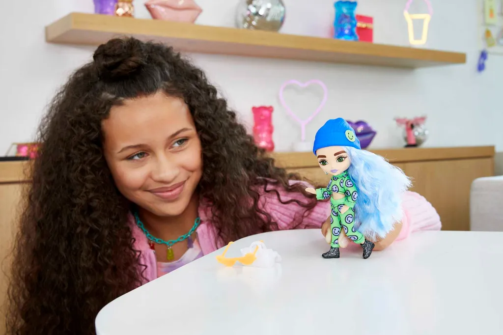 Barbie Extra Minis-Puppe #3 (ca. 14 Cm) Mit Moden, Accessoires Und Puppenständer