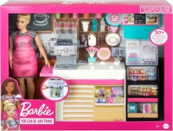 Barbie Nasch-Café Spielset Mit Puppe (blond), über 20 Teile Puppen-Zubehör