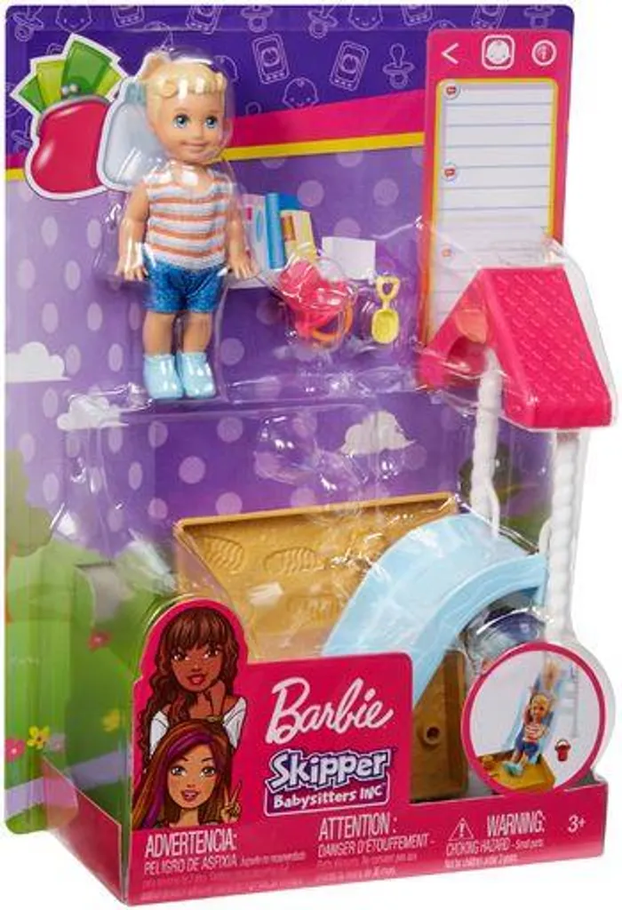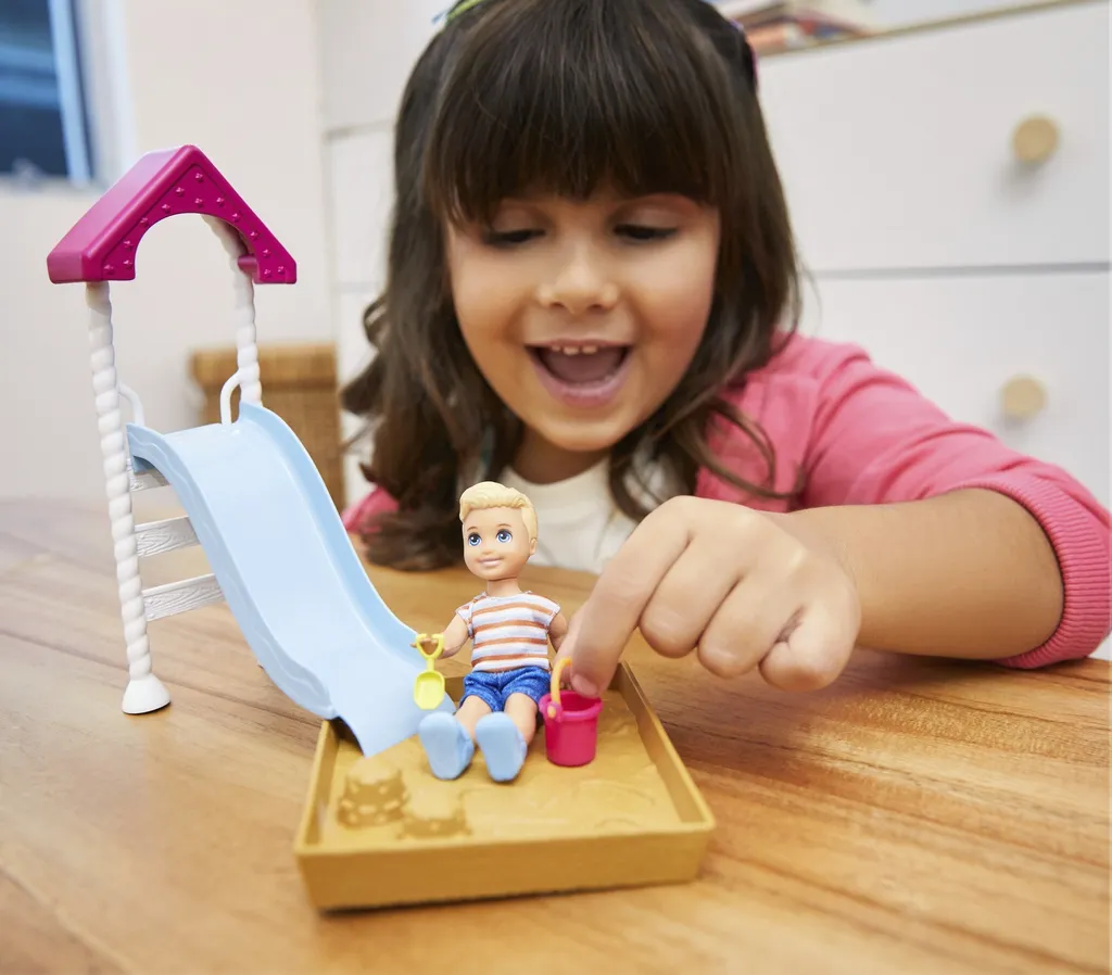Barbie „Skipper Babysitters Inc.“ Storytelling Spielset Sandkasten Mit Rutsche Und Baby Puppe