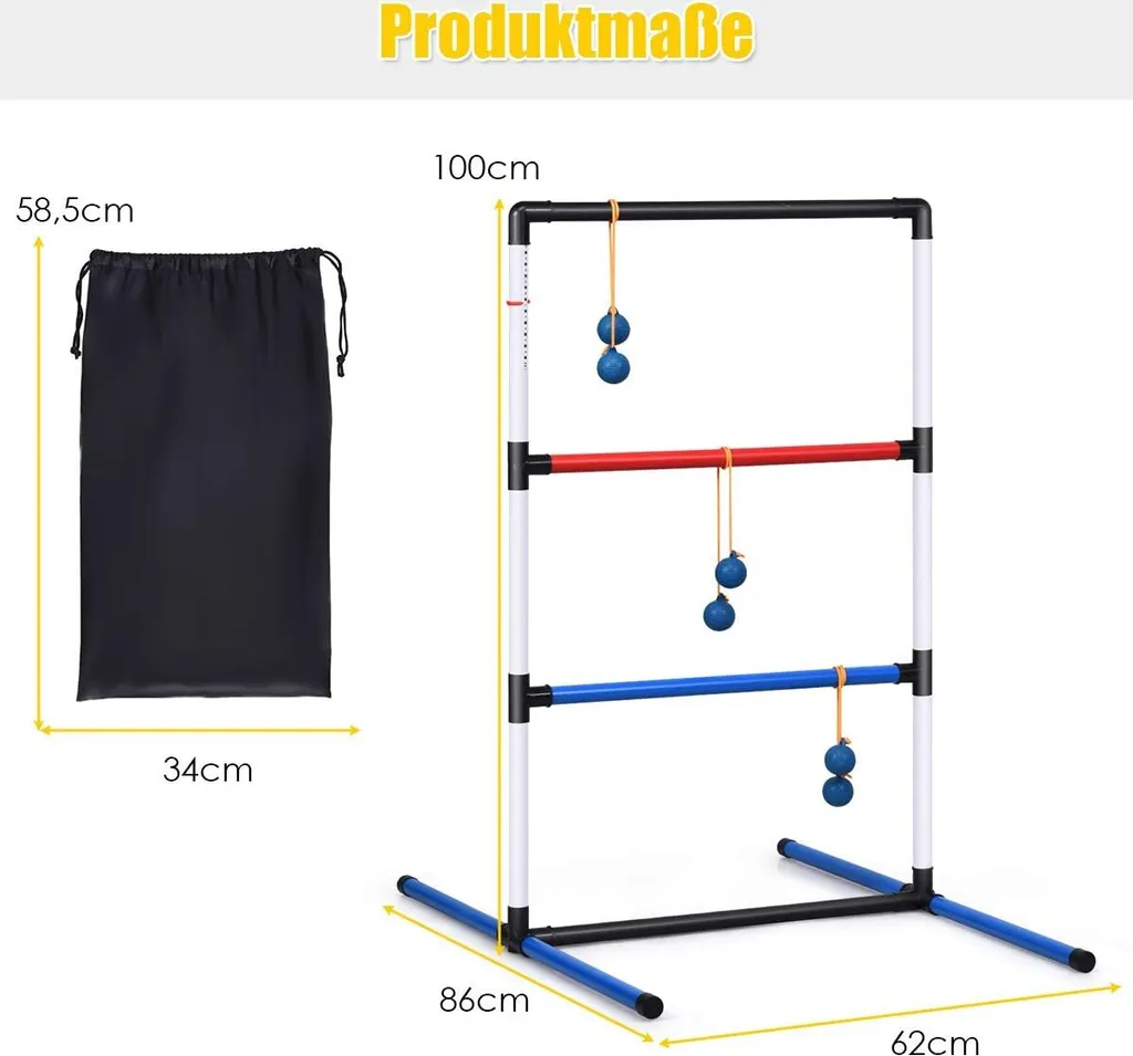 COSTWAY Leitergolf Wurfspiel, Laddergolf, Leitergolf-Set Mit Eingebautem Score-Tracker, Inkl. 6 PE-Bolas Und Tragetasche, Spiel Für Die Gesamte Familie Für Rasen, Strand, Partys