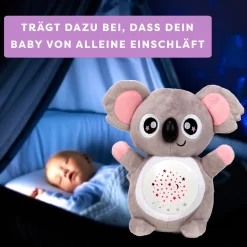Easybaby Einschlafhilfe Baby, Schlafkuscheltier Mit Beruhigender Gebärmutter Geräuschen, Heulsensor, Lichtprojektionen, Schlaftraining Baby – Koala