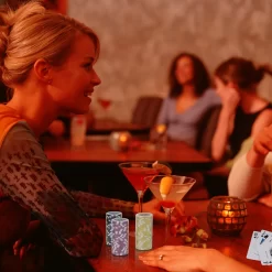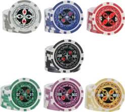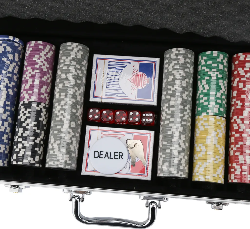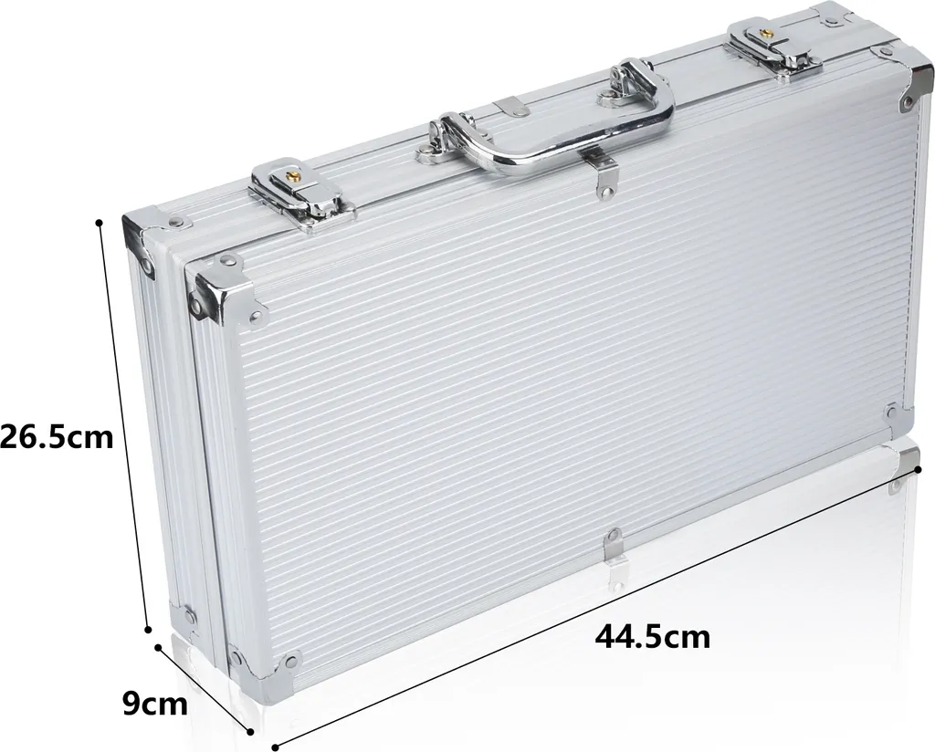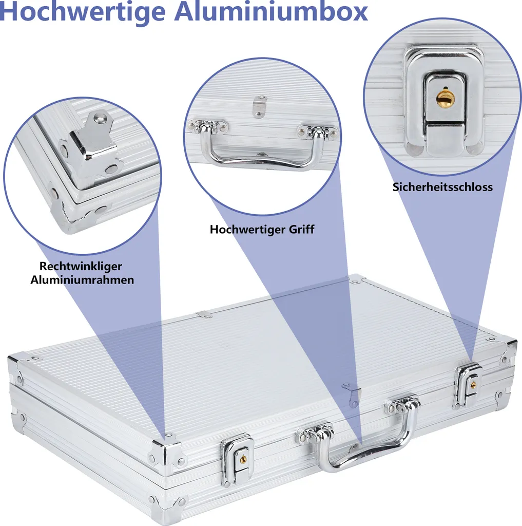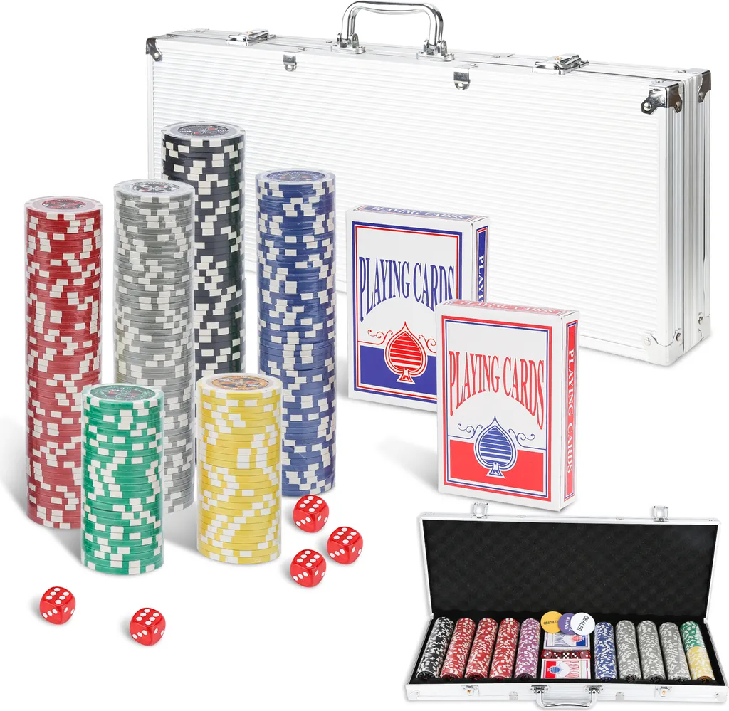 EINFEBEN Pokerchips Kartenspiele Pokerkoffer 300 Chips Laser Pokerchips Poker 11.5 Gramm , 2 Karten, 5Würfel, Mit Aluminium-Gehäuse Silber Koffer