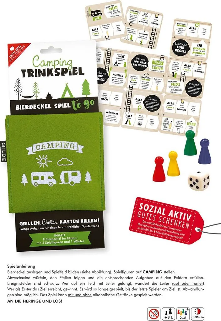 Gilde 44381 Trinkspiel „Camping“ To Go Bierdeckelspiel Im Filzetui Reisespiel