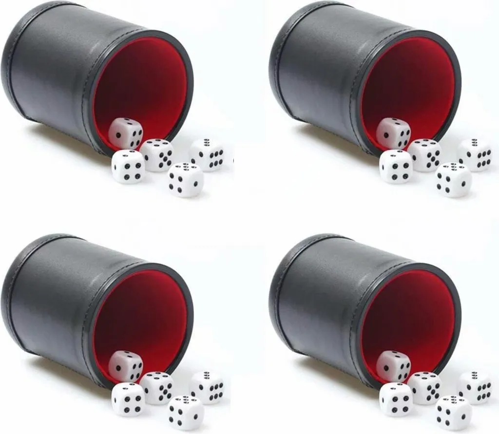 Leder-Würfelbecher-Set, 4 Stück, Filzfutter, Leiser Shaker Mit 5 Punkt Schwarz