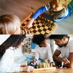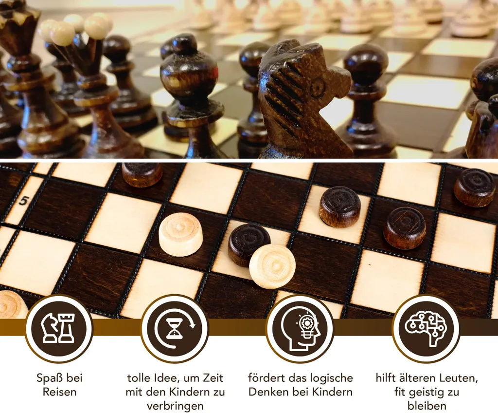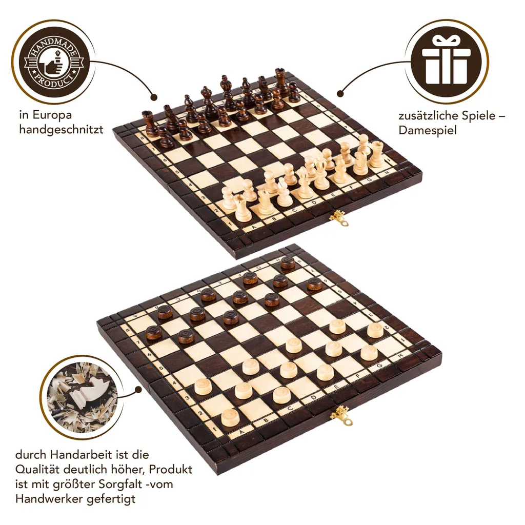 Schachspiel Schach Holz Schachbrett Mit Dame Spiel – 2 In 1 Chess Board Set Hochwertig Klappbar Mit Schachfiguren Groß Für Kinder Und Erwachsene 30,5 X 30,5 Cm