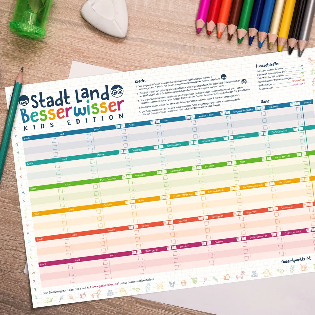 Stadt Land Besserwisser KIDS – Die Stadt, Land, Fluß Variante 2.0 Für Kinder – Mit 39 Spannenden Kategorien