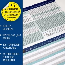 Stadt Land Blanko Spiel – Stadt-Land-Fluss Vorlage Gesellschaftsspiel | Spieleblock Mit 24 Feldern Als Familien & Partyspiel | 50 DIN A4 Blätter 400+ Kategorien | Der Knobelspaß Block