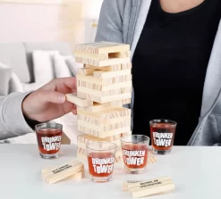 Trinkspiel Wackelturm + 4 Gläser Stapelturm Geschicklichkeitsspiel Partyspiel
