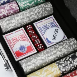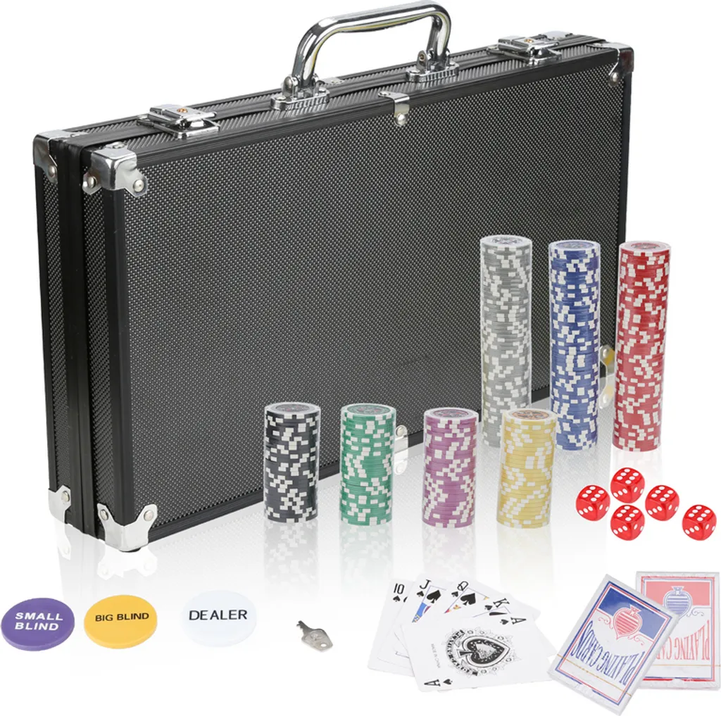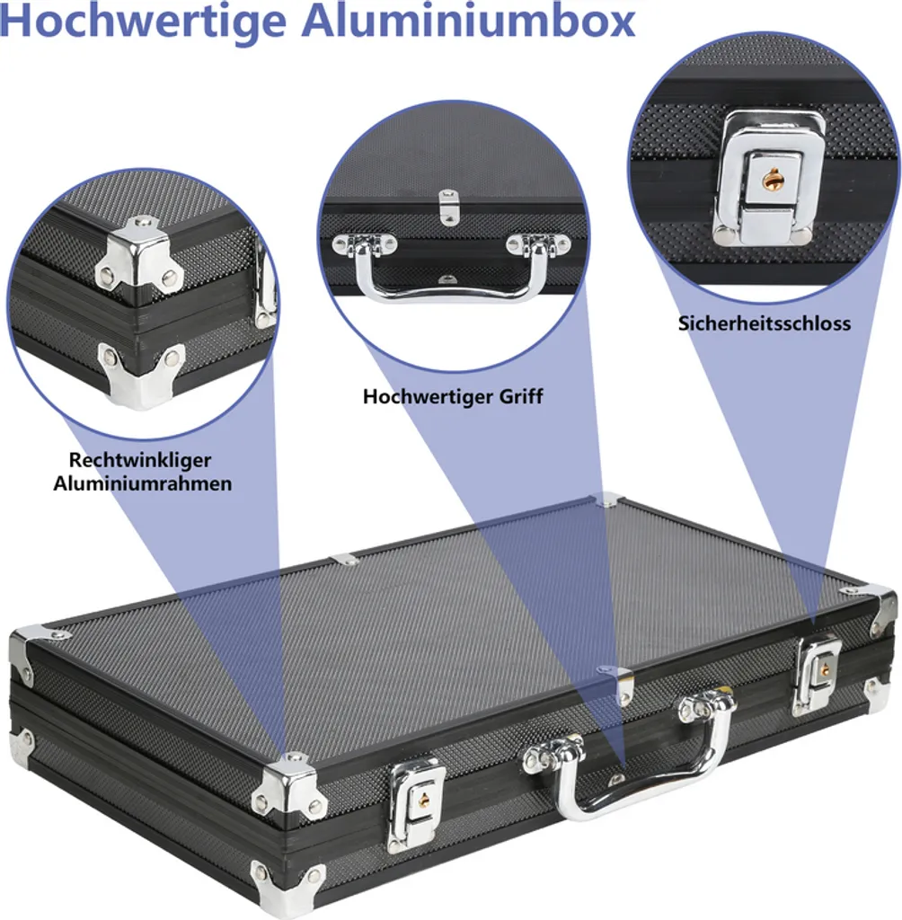 Wolketon Pokerkoffer 300 Chips Laser Pokerchips Poker 11.5 Gramm , 2 Karten, Haendler, 5 Wuerfel, Mit Aluminium-Gehaeuse Schwarz Koffer